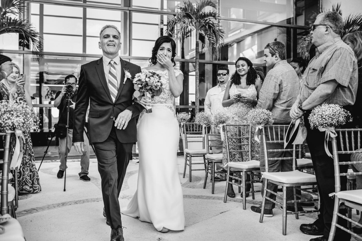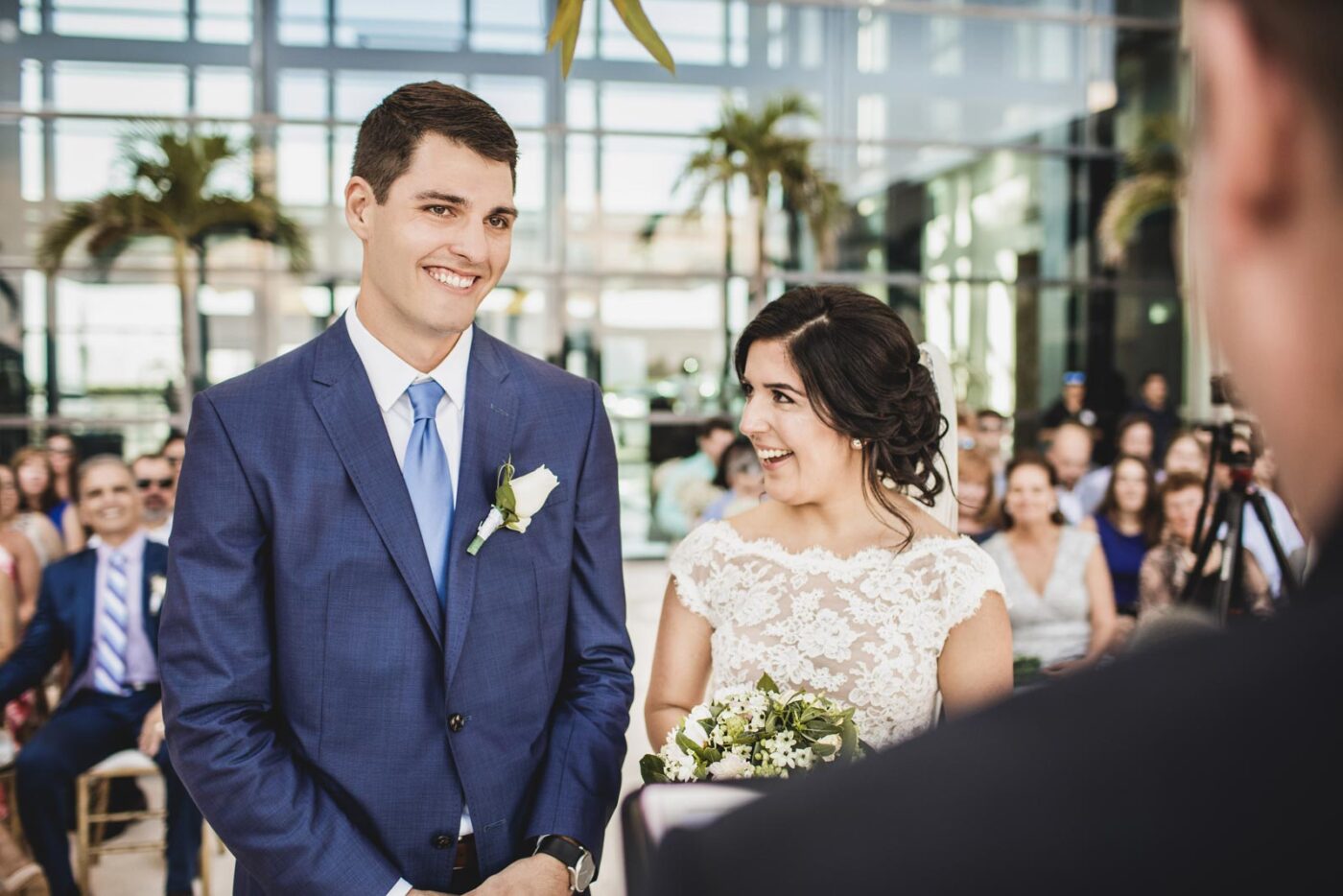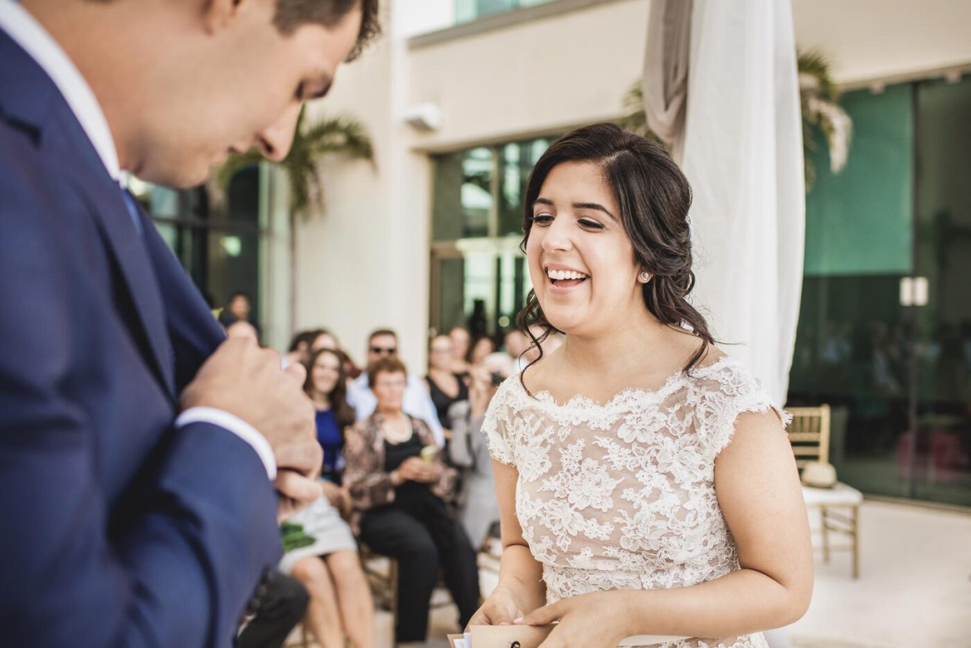 We started the day with Samantha’s gorgeous dress and Steven’s dashing suit. We were all buzzing with anticipation. The Live Aqua Beach Resort was our playground for the day, and we couldn’t have asked for a better backdrop. The ceremony took place on the Egos terrace, and it was just breathtaking. Love was in the air, and we couldn’t help but feel like we were part of something truly special.